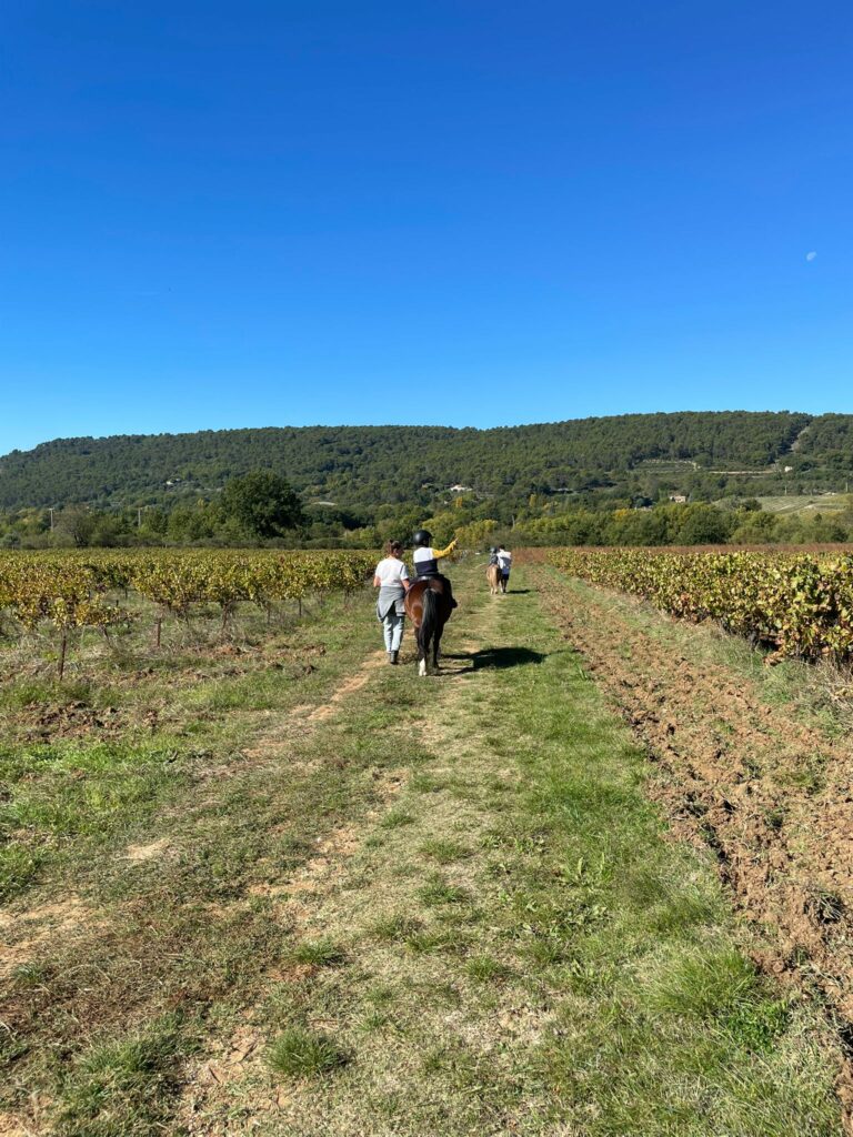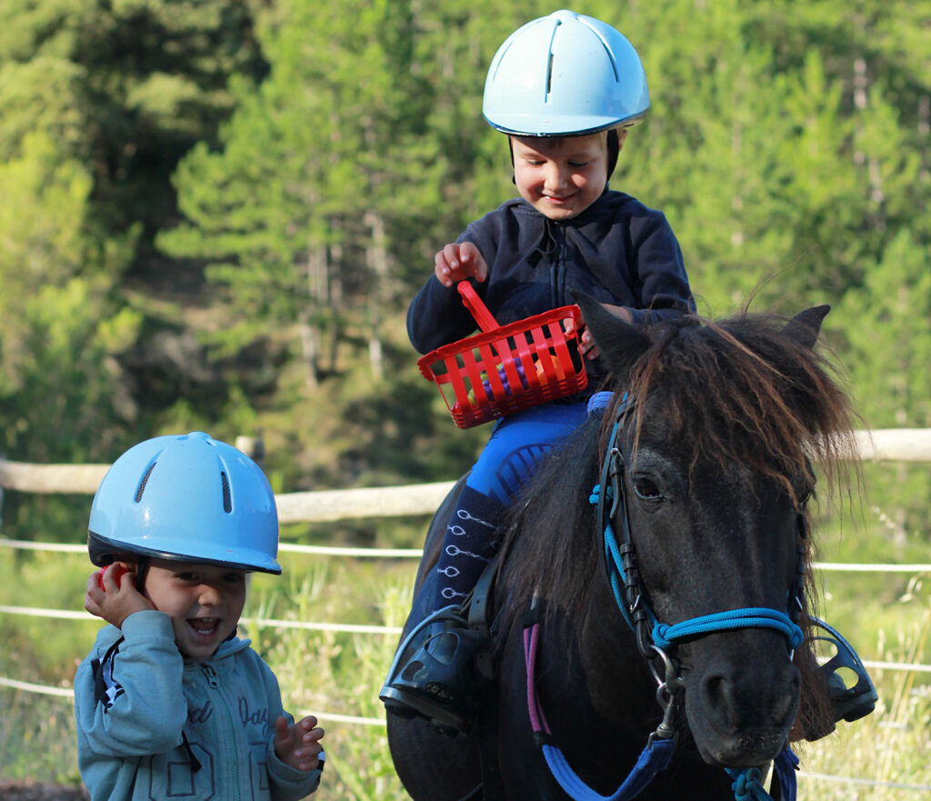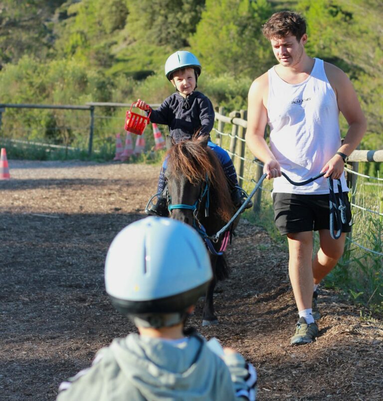 Pendant 1 heure, les enfants vont apprendre à s’occuper de leur poney, interagir entres eux, s’aider. Les séances se font en carrière, ou en extérieur, à pied ou à poney.