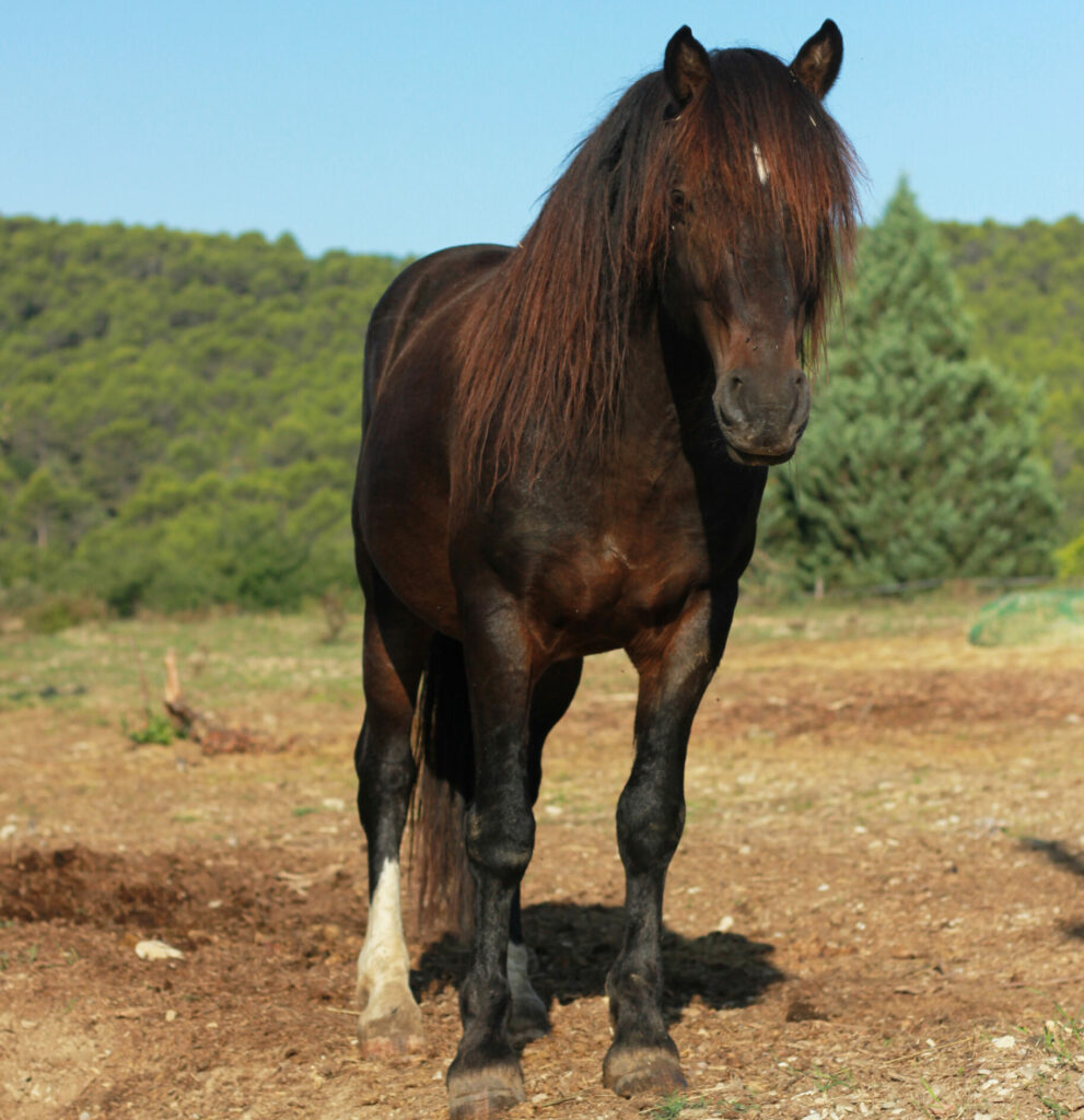 - Merlin : Merens/Fjord/Français de selle, hongre d’environ 1m45, 3 ans, frère de Noriak